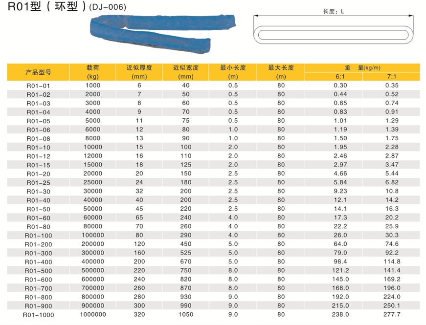 载荷识别:在使用过程中吊带上所标吨位,可通过吊带外套上的颜色识别承载重量