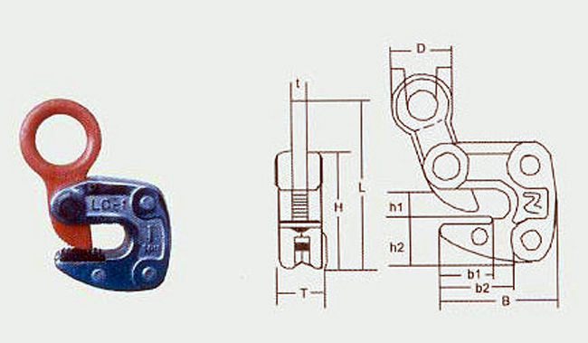 HLC日式钢板吊钳用于钢板的水平吊运,额定载荷指吊钳成对使用、吊点夹角为60度时允许起吊的最大重量。