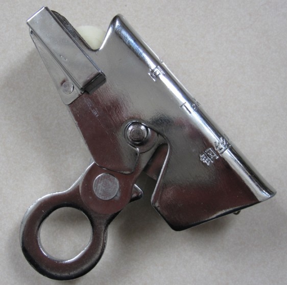 使用说明与注意事项:1、正确选用吊绳。XPS-2型只适用于Φ16的锦纶绳为吊绳。2、注意箭头方向。"↑"标记一定要朝上,否则无锁止功能。3、工作使用前,须压入吊绳试拉,当猛拉圆环时应锁止灵活,卡齿必须压紧吊绳,并检查各功能确认正常后方可使用,如有异常应立即停止使用。4、严禁安全绳盘绕绞接使用。三、使用方法:1、打开保险。2、松开安全螺丝。3、置于吊绳上(注意"↑"方向一定朝上)。4、拧紧安全螺丝。5、合上保险。四、维护和保养:1、应存放在干燥通风的地方。2、金属配件如有泥沙等污染时,应及时清理加油。3、若安全绳有污染,应用温水,中性洗涤剂冲洗干净,自然风干。4、使用一年后,应视批量购入情况,抽样用80kg冲击试验,如无异常,本批可继续使用(冲击试验过的样品禁止使用)此后每季度试检一次。