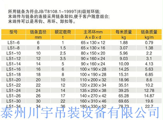 单腿成套链条索具参照标准JB/T8108.1-1999。