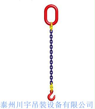 .该索具可以作为单肢捆绑索具使用,当单肢捆绑索具使用时只需将吊钩钩入链条,此时额定载荷将降低20%。