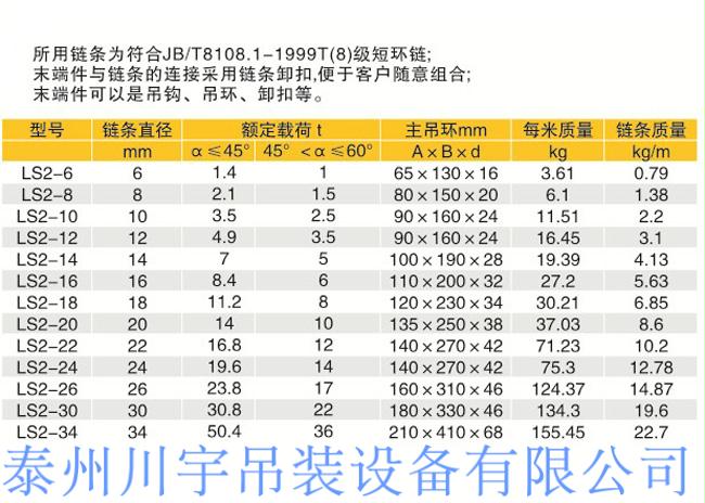 • 所用链条为符合JB/T8108.1-1999的T(8)级短环链。