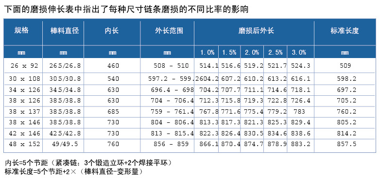 链环之间磨损会增加链条的节距,而链环外部尺寸不发生